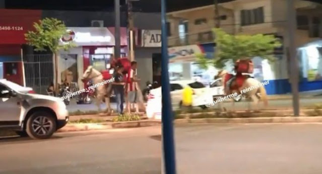 Um transporte para delivery de comida viralizou nas redes sociais por ser um “pouco usual”. Um entregador levou o pedido montado a cavalo. O fato ocorreu em Primavera do Leste no Mato Grosso. Vídeo no final do texto.